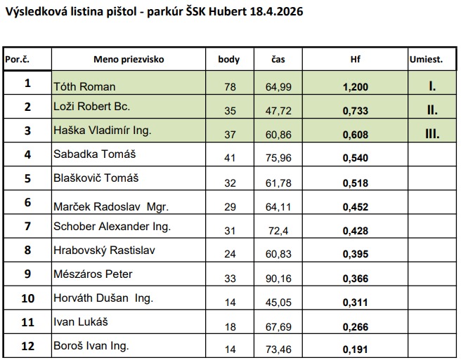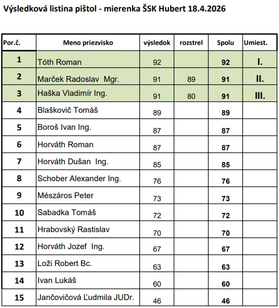 V sobotu 18. apríla 2026 patrila Strelnica Hubert nášmu tradičnému Jarnému klubovému dňu. Úvodného slova sa zhostil predseda klubu Ing. Jozef Horváth, ktorý zhodnotil spoločné aktivity za uplynulý rok 2025 a predstavil program podujatia. Hneď potom už hlavné slovo prevzali zbrane.