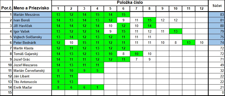 Súťaž prebieha formou zbierania výsledkov počas celého trvania súťaže.